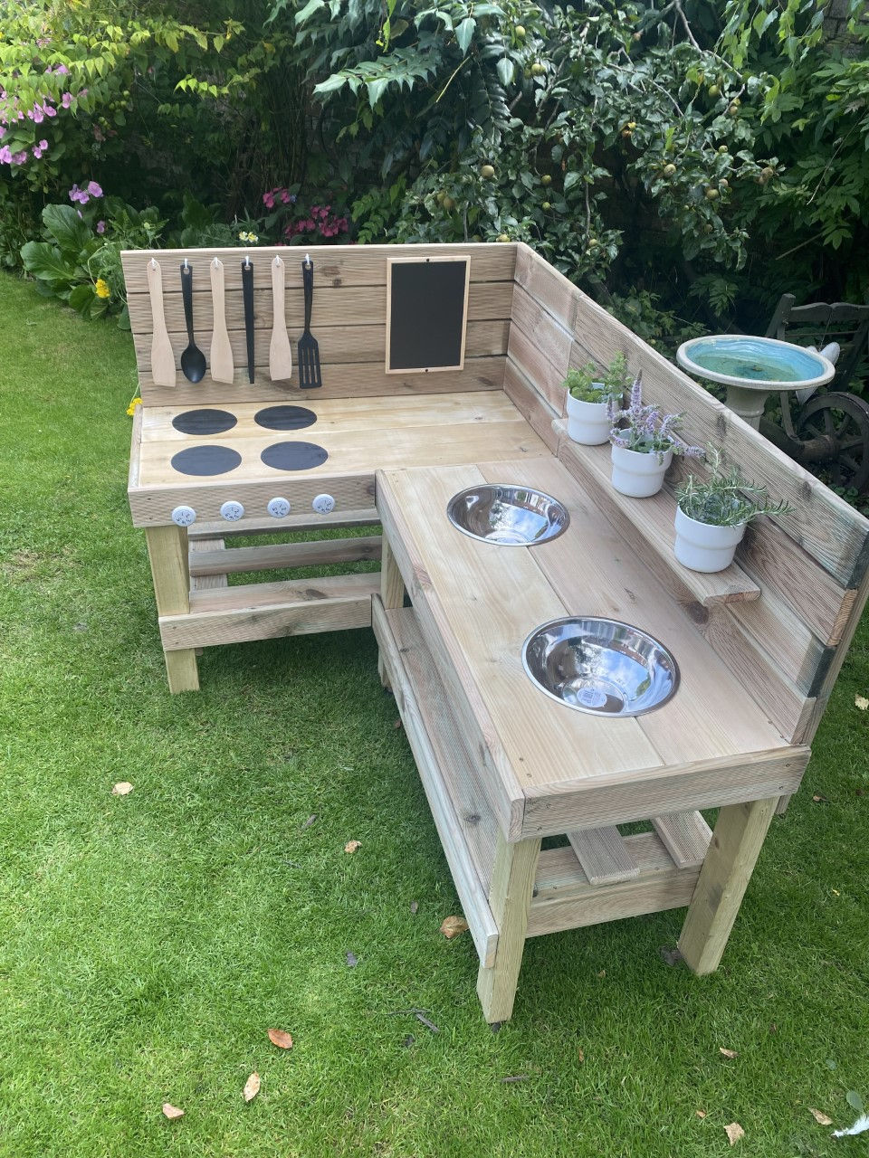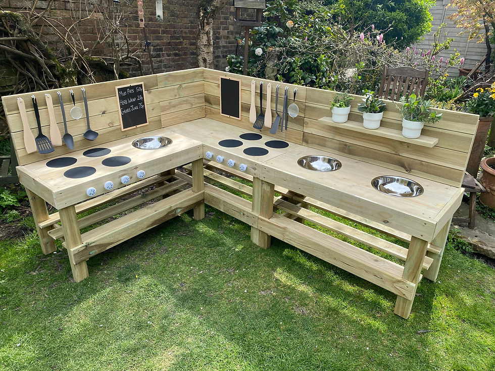 At Woods Mud Kitchens, we believe in the power of imaginative play and getting outdoors, whatever the weather. Our mud kitchens are sustainably sourced and designed to ignite creativity and encourage children to explore the great outdoors. We believe that there’s no such thing as bad weather, just bad clothing, so let your child’s imagination and love of nature run wild!